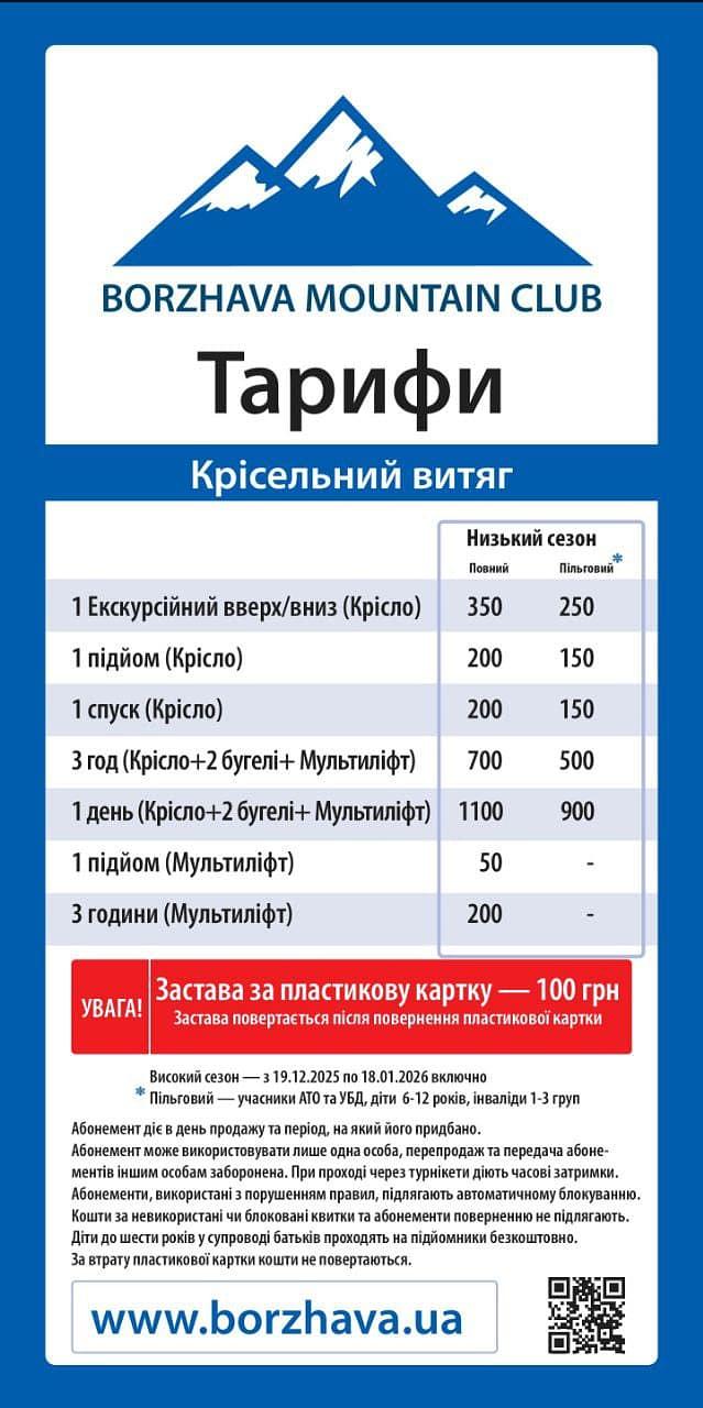 Графік роботи канатної дороги: з 10 до 16:30 з понеділка по п’ятницю та з 9 до 16:30.