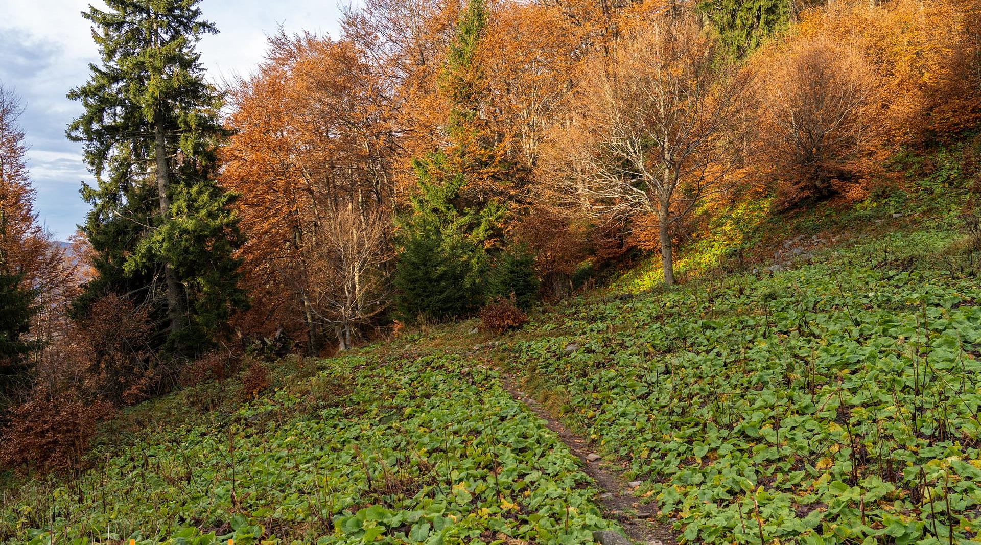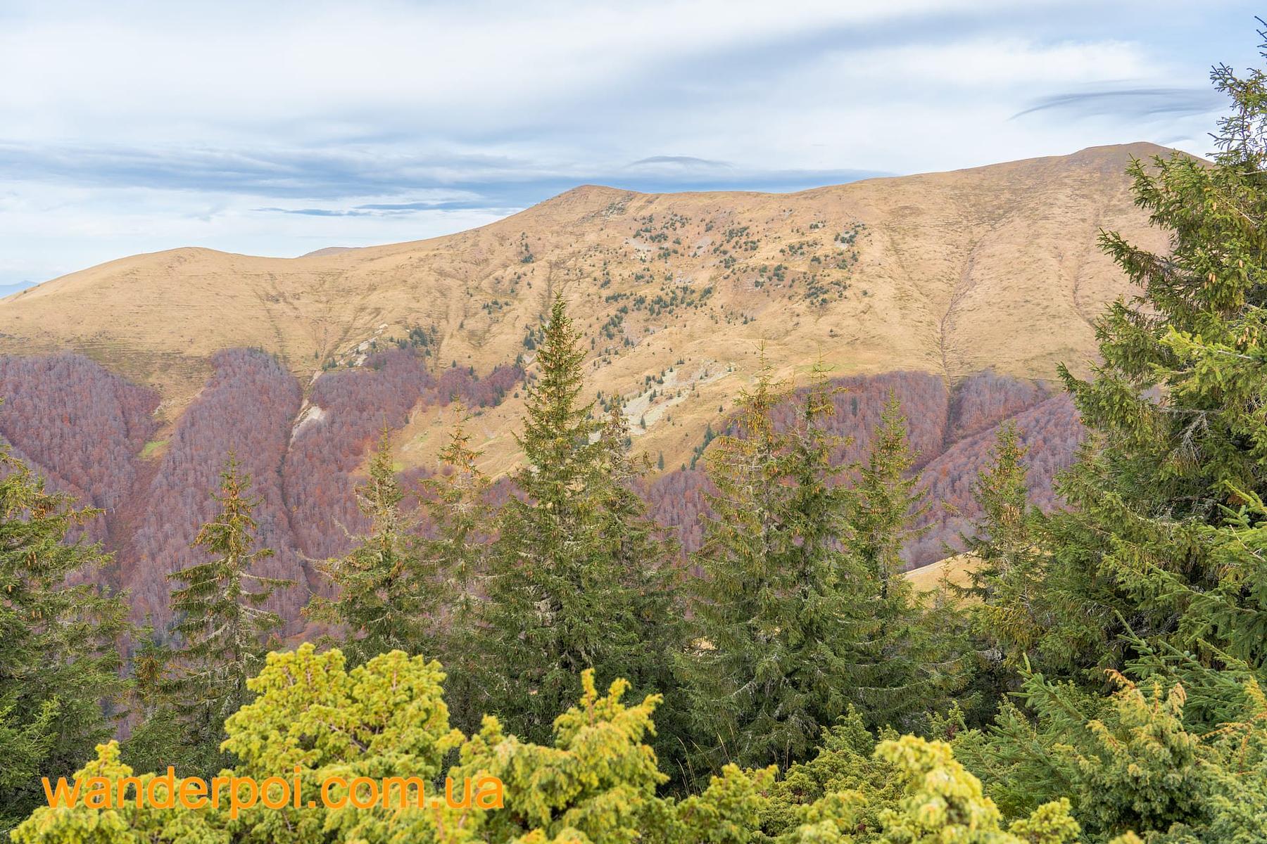 Схили тут вкриті буково-смерековими лісами, місцями трапляються кам’яні ділянки, а ближче до верху відкриваються полонини. Звідси вже добре видно наступні вершини маршруту.